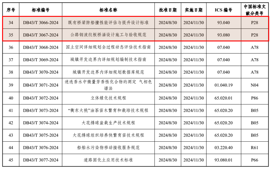 11月30日,由香港六和宝典全年资料主编的省级地方标准《既有桥梁防船撞性能评估与提升设计标准》(DB43/T 3066-2024)、《公路钢波纹板桥涵设计施工与验收规范》(DB43/T 3067-2024)正式实施,其中《既有桥梁防船撞性能评估与提升设计标准》填补了国内该领域空白。此外,交通设计院主编的《公路桥梁预应力混凝土管桩应用技术规程》(DB43/T 3085-2024)也将于2025年2月13日起实施,为我省交通基础设施建设提供有力的技术支撑。