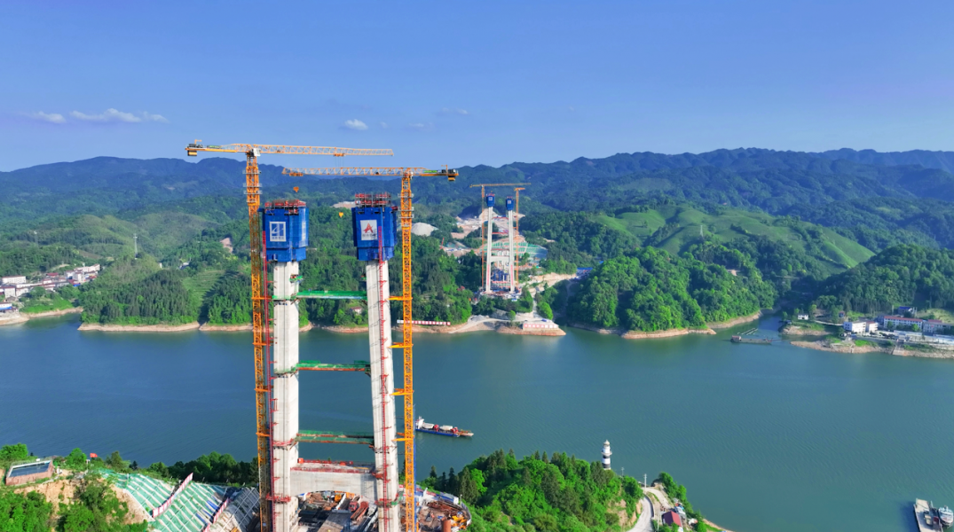 张官高速:全省在建最大跨径悬索桥主塔封顶